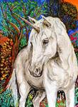 2015Dit schilderij geeft mij nog steeds een goed gevoel. De eenhoorn is een symbool welk veel met mijn werk te maken heeft. Een symbool voor kracht, puurheid, gezondheid, geluk, vernieuwing en zuiverheid. De tederheid van de beeltenis is voor mij heel belangrijk.